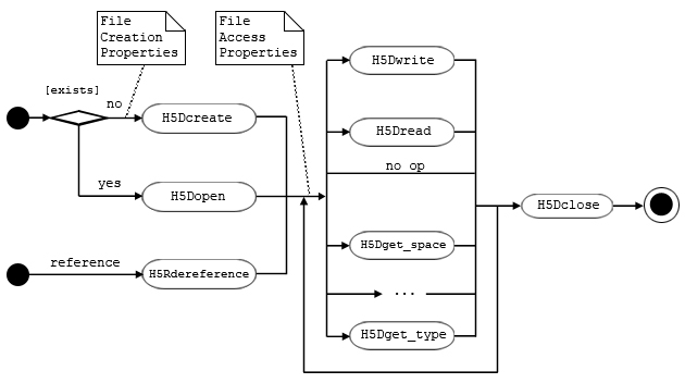 Functions that can be used with datasets (Datasets (H5D) functions) and property list functions that can used with datasets (Property Lists (H5P) functions) are listed below.