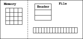 A dataset object is stored in a file in two parts: a header and a data array. The header contains information that is needed to interpret the array portion of the dataset, as well as metadata (or pointers to metadata) that describes or annotates the dataset. Header information includes the name of the object, its dimensionality, its number-type, information about how the data itself is stored on disk (the storage layout), and other information used by the library to speed up access to the dataset or maintain the file's integrity.