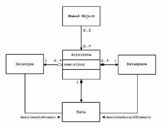 The name, dataspace, and datatype of an attribute are specified when it is created and cannot be changed over the life of the attribute. An attribute can be opened by name, by index, or by iterating through all the attributes of the object.