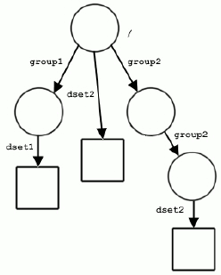 Note: The figure above shows three groups; /group1 and /group2 are members of the root group.