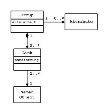 Group membership is actually implemented via link objects. See the figure below. A link object is owned by a group and points to a named object. Each link has a name, and each link points to exactly one object. Each named object has at least one and possibly many links to it.