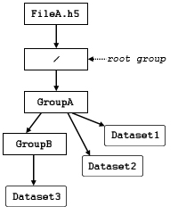Consider, for example, the file illustrated in the figure below. Dataset1 can be identified by either of these absolute path names: /GroupA/Dataset1