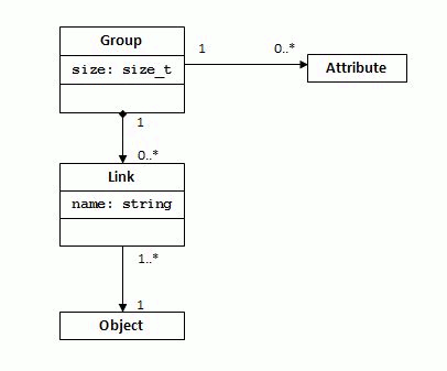 Group membership is actually implemented via link objects. See the figure above. A link object is owned by a group and points to a named object. Each link has a name, and each link points to exactly one object. Each named object has at least one and possibly many links to it.