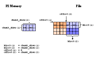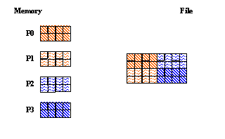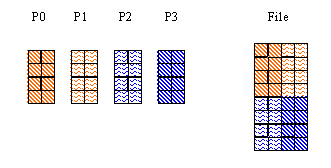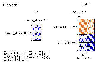 In this example each process writes a "chunk" of data to a dataset. The C and Fortran 90 examples result in the same data layout in the file.