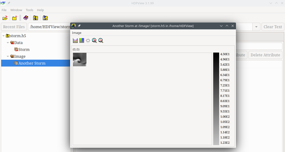A previous topic demonstrated how to view any dataset as an image in HDFView. With HDFView you can also create an image to begin with, as is shown below.