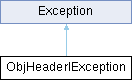 Inheritance diagram for ObjHeaderIException:Public Member Functions | |
