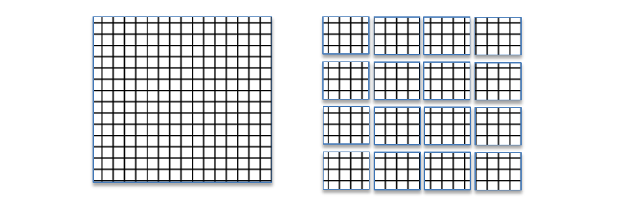 An alternative is chunked storage (a chunked storage layout). When chunked storage is used, a multidimensional array is logically divided into equally sized chunks. For example, Figure 9 below shows the 6x9 array divided into 6 3x3 chunks. Chunked storage layout and chunk sizes (number of elements in a chunk along each dataset dimension) are specified at dataset creation time and cannot be changed without rewriting the dataset. Chunked storage is required if data will be added to an HDF5 dataset and the maximum size of the dataset is unknown at creation time (see Figure 3). Chunked storage is also required if data will be stored compressed.